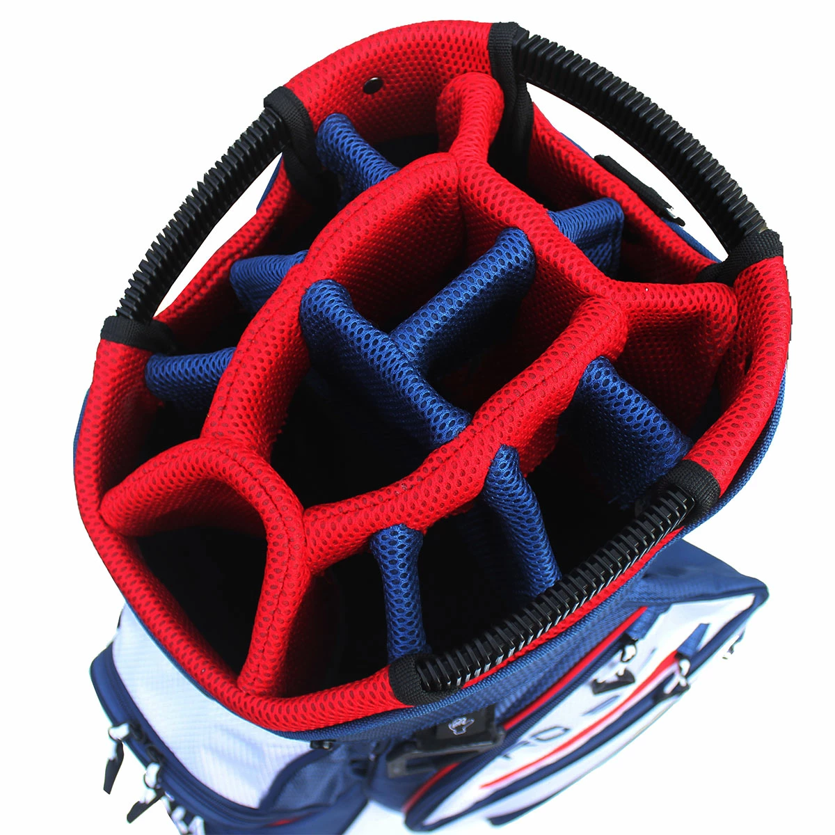 Designed with a 14-way divider top so you have individual spaces for every club used in competition. It also features a front positioned putter pit for use with modern oversize putter grips, plus has built-in top lift handles for better mobility.