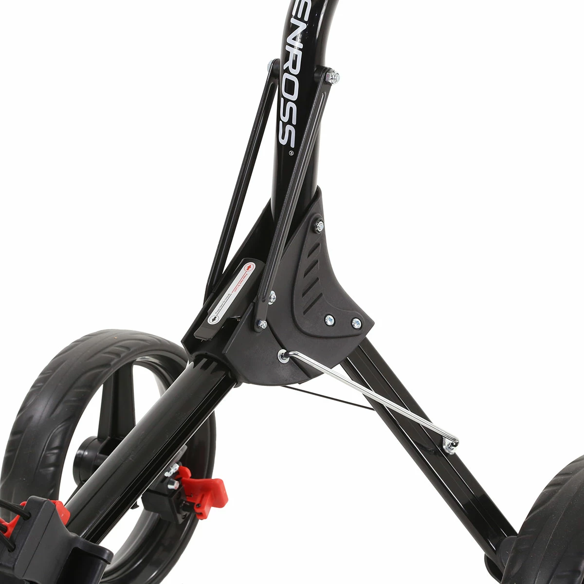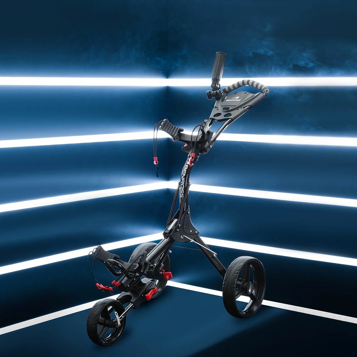 This compact folding golf trolley is lightweight and can fit into the smallest of spaces for easy transportation, complete with additional extras at no additional cost.