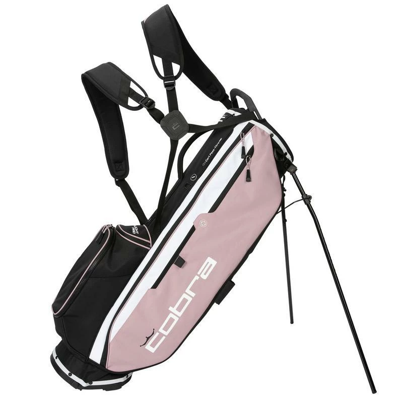 Cobra Ultralight Pro Stand Bag The Cobra Ultralight Pro Stand Bag is the perfect golf bag for golfers who like to walk the length of the golf course.& At only 4lbs this incredibly lightweight bag has freed up a lot of room for you to carry anything you could ever need on the golf course, thanks to the seven pockets. Also included in the design of this golf bag is a magnetic range finder slip pocket so that you can quickly and easily get to your rangefinder whenever needed. Cobra has redesigned two of the elements in this stand bag to make it much more stable. The use of a new easy flex base encourages better ground contact for more stability, while a new leg design creates a lower centre of gravity to make the bag more stable while also creating a streamline look too.& Features Lightweight – Designed for golfers who like to walk, Super easy to carry at only 4lbs. Storage with a purpose – 7 pockets thoughtfully designed to carry everything a golfer needs and that’s it. No more, no less. Magnetic Range finder slip pocket New Stable Leg Design – An updated leg design provides a streamlined aesthetic and lower CG yields a more stable bag. New Easy Flex Base – Better ground contact for even more stability. Weight: 4Lbs 7 Pockets &