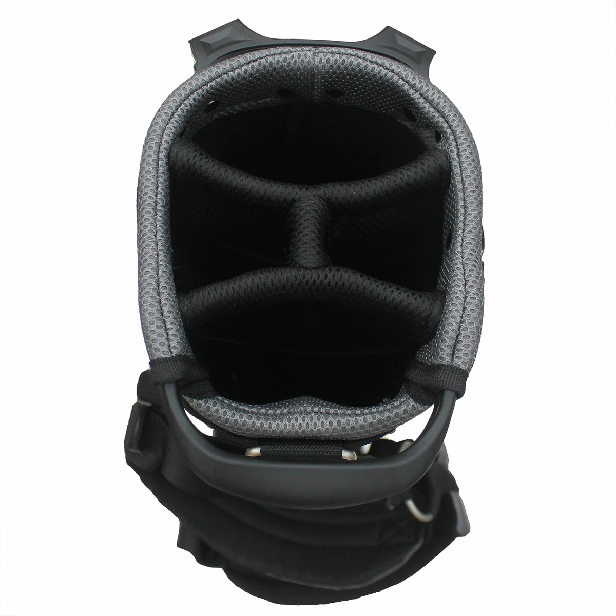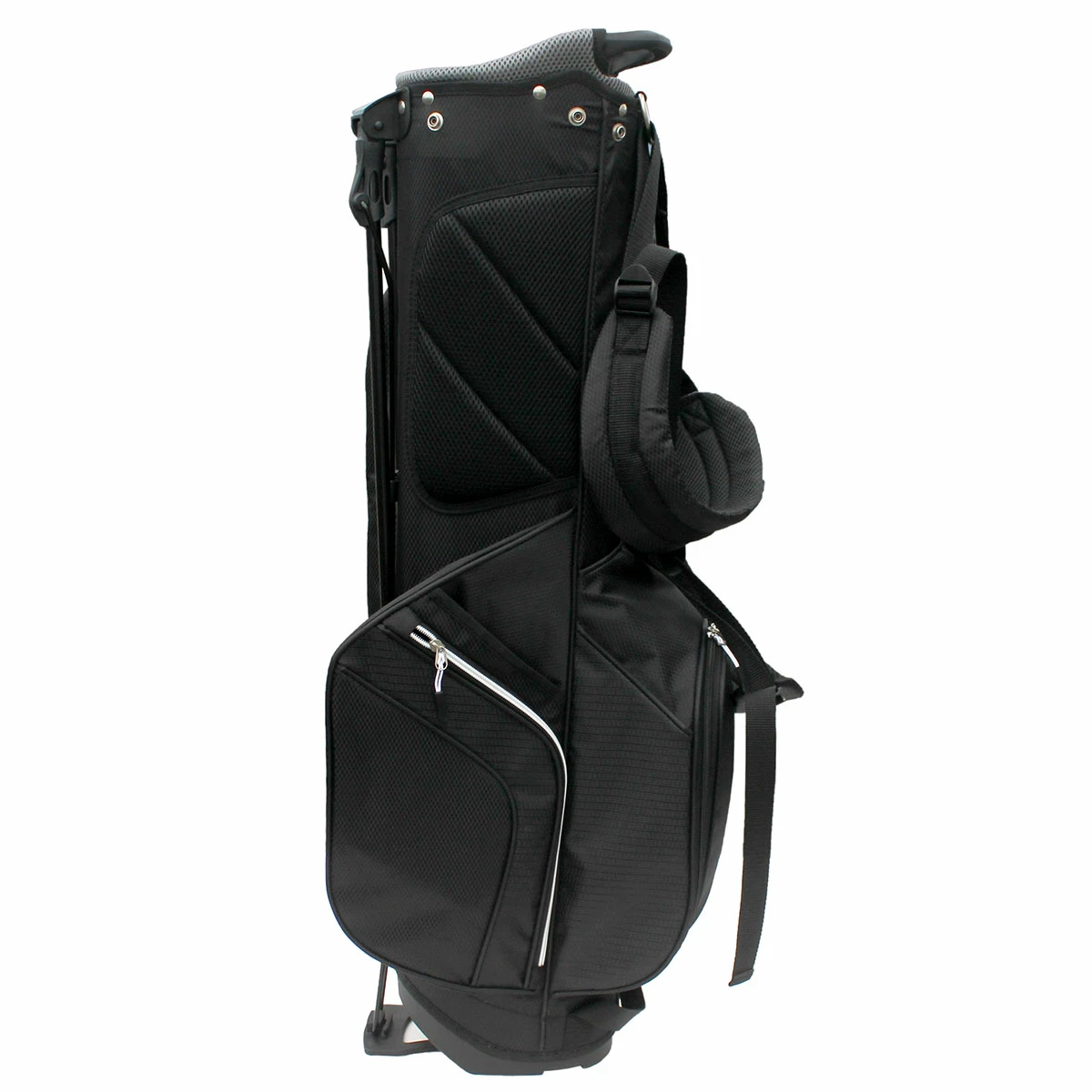 Carry all your clubs with ease in this strong, durable and lightweight 2.5 stand bag. Its helps keep your clubs organised due to the 7″, 4 way graphite friendly separator top and 3 full length club dividers. For your convenience and storage, the bag comes with 5 zippered pockets that include a full length clothing pocket and velour lined valuables pocket. There is also a hydration bottle sleeve.