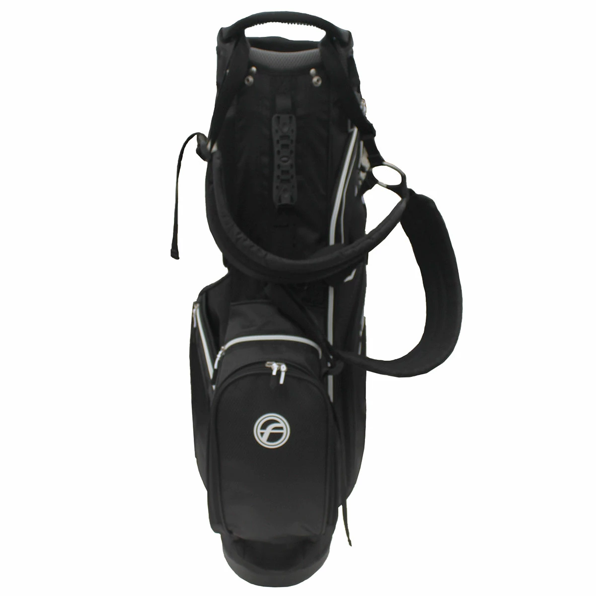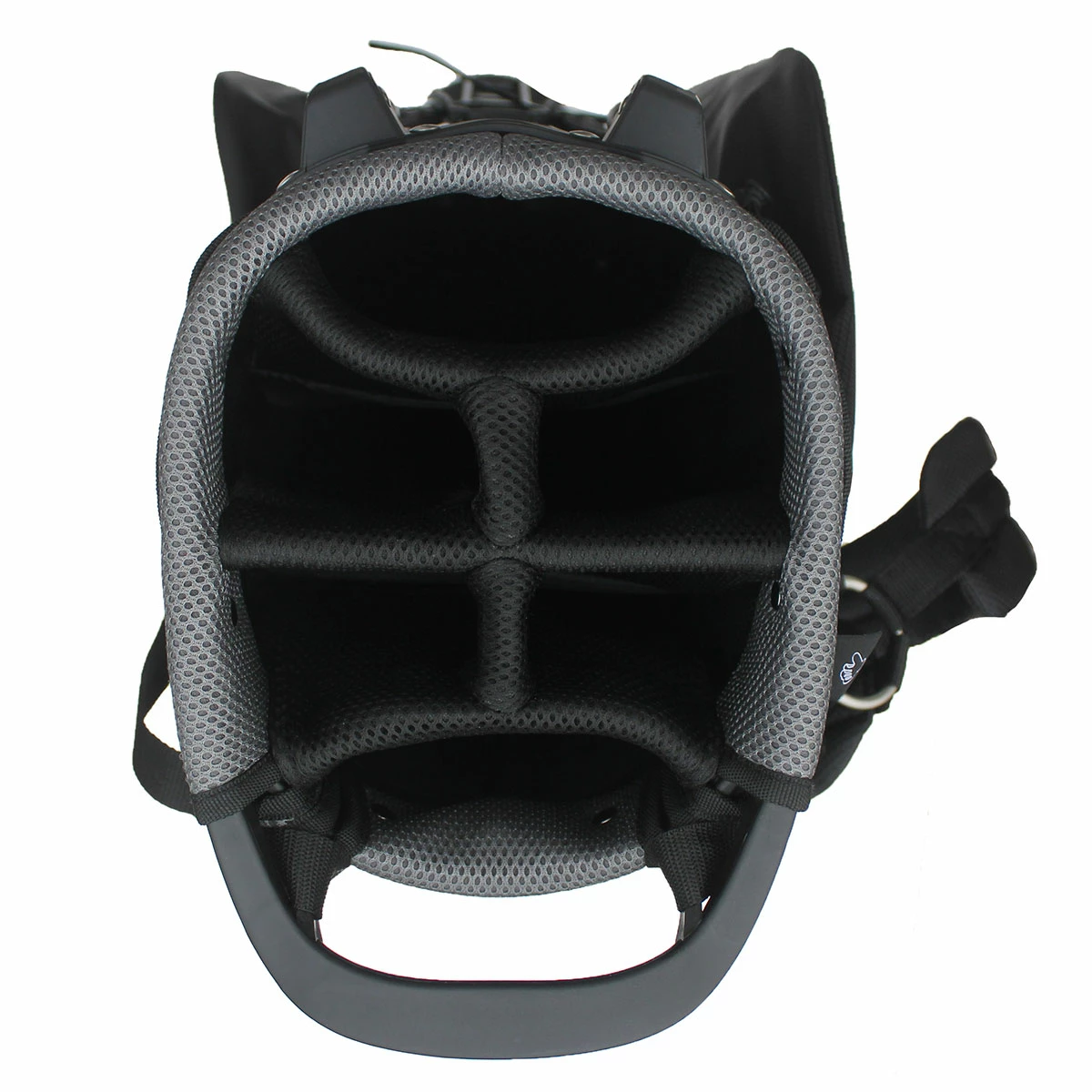 Carry all your clubs with ease in this strong, durable and lightweight 3.0 stand bag. Its helps keep your clubs organised due to the 8.5″, 6 way graphite friendly separator top, 3 full length club dividers and a front position putter pit. For your convenience and storage, the bag comes with 6 zippered pockets that include a full length clothing pocket and velour lined valuables pocket. There is also a hydration bottle sleeve.