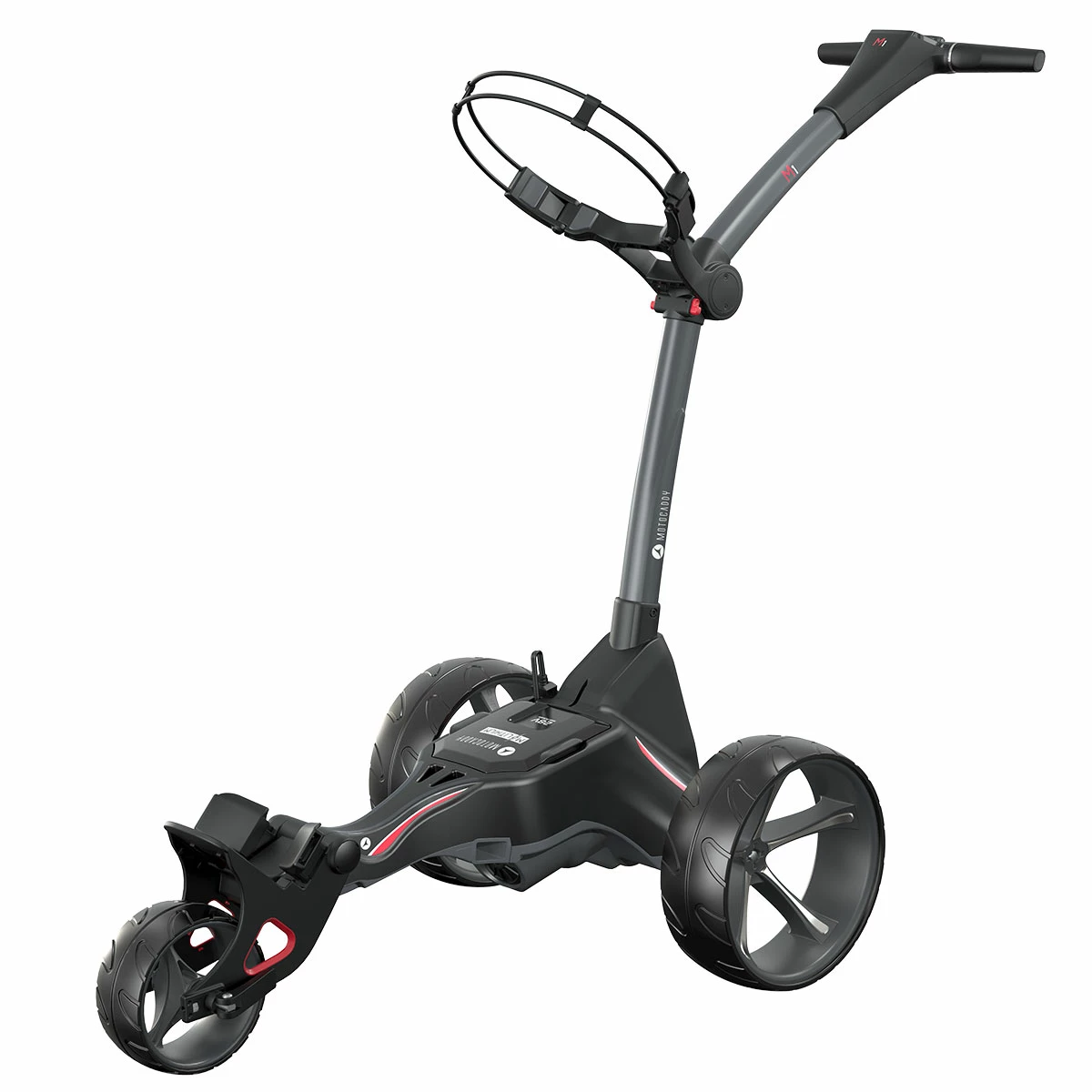 The new M1 trolley has one of the world’s most simple compact folding frames. It includes new sports wheels, a widescreen display, and a USB charging port, with next-generation high-power 28-volt system to ensure you can complete your round of golf.