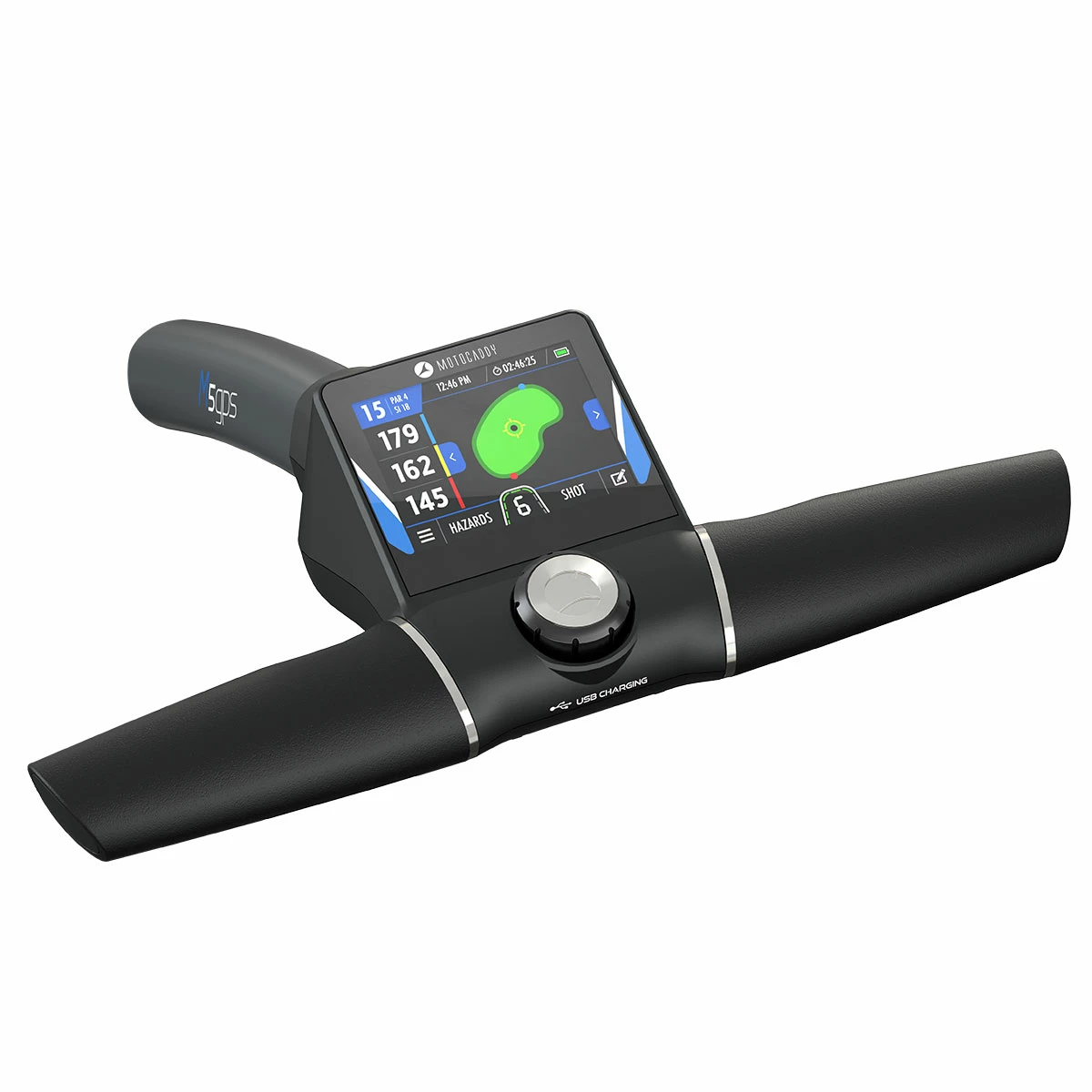 This award-winning trolley offers a fully‑integrated GPS built into a super-responsive 3.5” touchscreen display. Boasting 40,000 pre‑loaded courses with pin-point accuracy, it can also connect to the Motocaddy GPS app for smartphone alerts and offers built-in WiFi for instant Over‑the‑Air course and system updates.”