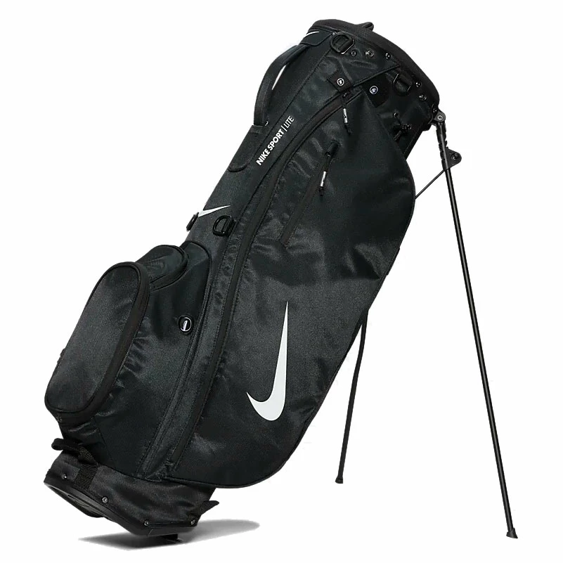 Nike Sport Lite Golf Stand Bag The Nike Sport Lite Golf Stand Bag has been created so that golfers can experience a golf club bag that is incredibly lightweight and easy to carry around a golf course to play a full 18 holes in comfort while also providing plenty of storage and weather protection too.& Nike has designed this golf bag to be ultra-lightweight, weighing a tiny 1.68kgs, so that golfers are able to play a full round of golf without feeling sore when getting to the end of the day. This lightweight design has been paired with a Nike Equaflex dual strap system that offers greater balance and stability while you carry this bag with the weight being spread across a player’s shoulders and back.& This stand bag has been created to feature a 5-way top that features a putting well and two full-length dividers. This design allows for your golf clubs to be stored in a very organised way that allows for easier access to the club you need while playing an intense round of golf. This bag also features two full-length dividers that ensure that the shafts of your golf clubs are protected while walking the golf course.& Nike has created the Sport Lite Golf Stand Bag to also feature plenty of storage space, with six pockets that feature a full-size clothing pocket that is suitable for waterproof jackets, jumpers and hoodies, with five other spacious pockets so that you can bring everything you need on the golf course to have a great game.& One of the pockets featured in this golf bag featured water resistant fleece lining which keeps your personal items such as smartphones and car keys protected in bad weather conditions, while a rain hood is also included to protect your golf clubs quickly during a sudden downpour of rain. Features 8.5-inch oval top 5-way, 2 full-length divider system with putter well Ultra-lightweight and durable Nike EquaFlex double strap system 6 functional pockets Water resistant fleece-lined valuables pocket Full-length apparel pocket Glove pockets Water-bottle sleeve Integrated GPS loop, pen sleeve and glove patch Custom grip leg end-caps Matching rain hood included Zip-off ball pocket Weight: 1.68 kg &