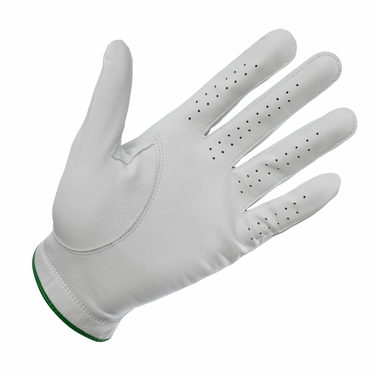 Cabretta leather is known for its fine quality and soft hand feel, it is highly durable for long-lasting performance as you play golf. This special edition glove features a moisture-wicking wrist band to keep you dry and comfortable. Plus has perforations to increase breathability to improve comfort as you perform. It has an ergonomically angled Velcro closure for a tight fit, to give you a Tour player fit and feel.