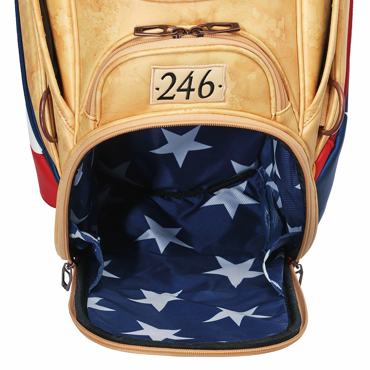 Get the professional look on the golf course with this fantastic 2022 TaylorMade U.S. Open Championship staff bag, paying homage to the host region’s rich ties to American history.