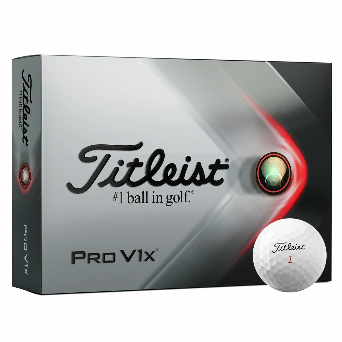 The Titleist Pro V1x golf ball is designed to deliver even longer distance, more greenside spin and control, plus a softer feel. The Pro V1x offers a higher trajectory, spin when you need it and firmer feel compared to Pro V1.